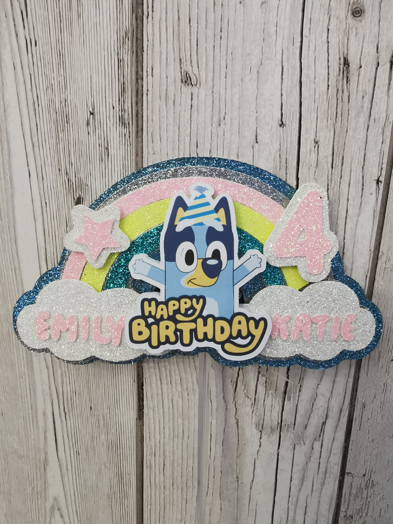 Personalised Bluey Rainbow Style Cake Topper (supplied as pictured)