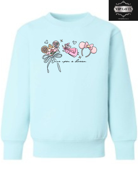 Your choice of White, Blush Pink or Pastel Blue sweatshirt in sizes 2-10 years.
